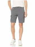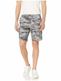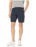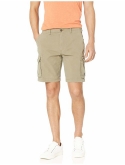 These utility shorts feature cargo pockets and an elastic band at back waist Zip fly with button closure, off-seam side pockets, rear button-through flap pockets 9" inseam