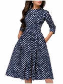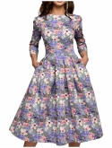 Features:Round Neck,3/4 Sleeve,Two Side Pocktes,Back Center Zipper Closure,Midi Knee Length,Floral Print Dress,Vintage Midi Dress.