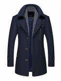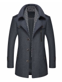Fabric: 30%wool/70%polyester Button down closure, Long sleeves with belt Classic notched lapel collar with removable scarf Solid color: Black, Grey, Tan, Brown, Wine, Navy Blue Two slant pockets with button and two inner pockets