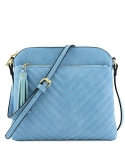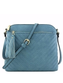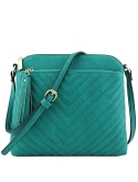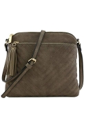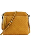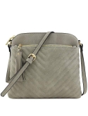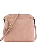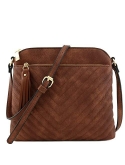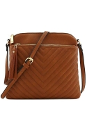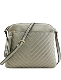 9.5" (W) x 8.5" (H) x 1" (D) Zipper closure Adjustable shoulder strap with 20.5" (min) to 23.5" (max) drop Faux leather & gold tone hardware 1 zipper pocket & 1 slip pocket inside