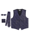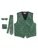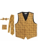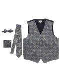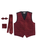 100% Polyester Formal Paisley Design Tuxedo Suit Vest Satin Texture Material Fully Lined, Adjustable Back Strap, 2 Front Welt Pockets Button Front Closure Set Includes: Vest, Tie, Adjustable Bowtie and Pocket Square