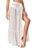 Side split, solid color, see through, long coverup summer skirt