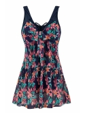 Full bottom coverage: One piece swimsuit with bikini bottom under the skirt.