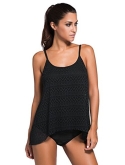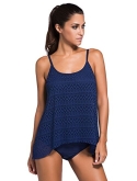 Camisole Lace Overlay Tankini Bikini Top with Removable Soft Cup Paddings,No Underwire,Classic Chic Lace Hollow Out Design.