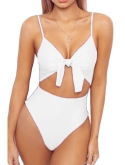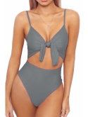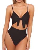 High waist,Cutout/Hollow Out,Solid Color,Tie Knot Front,High Cut/Waisted Thong One Piece Swimsuit.