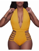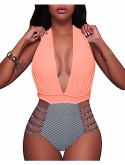 Removable soft padded bra, adjustable halter strap for shelf tie.Plunge v neckline, cut out part at the bottom and backless design endow this swimwear with fashion, sexy and flattering feeling.