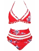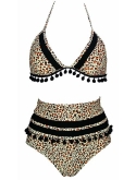 Triangle top with Tassel Trim along the Adjustable straps,Removed Padding Cups;High-rise briefs