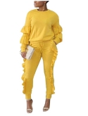 Long sleeve sweatshirt and pants featuring ruffle sleeve scuba.