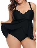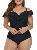 Acelitt Women's Plus Size Solid Black Swimsuit Monokini Plus Size Swimwear (M-XXXL)