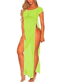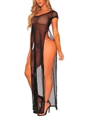 Sheer swimsuit cover up split side make the dress more elegant,help you get lots of compliments.