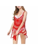 Elegantly and sexy designHand knit, featuring gorgeous fringes,a deep V neck, sexy hollow out, the tassel is on the knee.