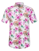 Features: casual loose straight fit, short sleeve, turn down collar, button closure, printing flwoer