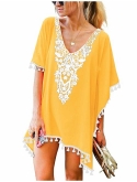 Beach Cover up Features: This crochet chiffon / tassel / bat-wing sleeve / casual swim dress, Side split easy to put on or take off cover ups for swimwear women