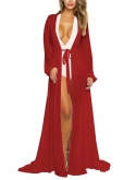 Plunge front opening with tie waist sash