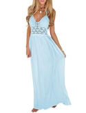 Feature: Sleeveless, Halterneck, Backless, Crochet, Bohemian style, Casual wear, Maxi Long Sundress
