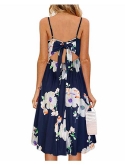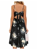 Features: V-neck plain dress, tie back and backless design, adjustable spaghetti strap, elastic waist, two side-seam pockets, knee length, high waisted.