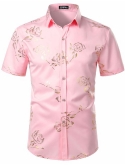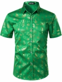 Elegant Party Design:Luxe Shiny Gold Printed/Breathable fabric/Stretchable fabric ensures more flexibility when moving/Short Sleeve Button Down Shirts for Men