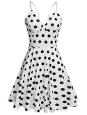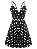 Features: This cute midi dress is A-Line, Plunge V-neck, Low back, Spaghetti Strap(Adjustable), High Waist,Flare and Swing.Concealed back zipper Closure, Solid/ Polka Dots Prints for choice.