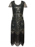 Vintage 1920's Style Flapper Costume,The design mini short sleeves to help lift shoulder and Make full body look slimmer