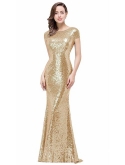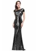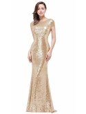 Cap Sleeves Sequined Full Length Backless Sheath Bridesmaid Evening/Prom Dress