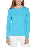 Flattering feminine cut; Body length 25 inches (size medium); Authentic t-shirt will have Coolibar logo on wearer's left sleeve and tagless Coolibar tag on inside neck