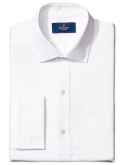 Long-sleeve non-iron dress shirt featuring spread collar, French cuff, and pocket at chest