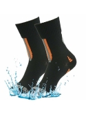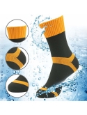 Premium Waterproof Breathable Socks designed with a three-layer construction, which handily solves the contradiction between waterproofing and breathing property. Outer layer: 61% high waterproof nylon, 32% polyester, 7% elastane; Inter layer: a high performance lightweight function of waterproof and breathable membrane; Lining: 66% coolmax, 30% polyester,4% elastane.