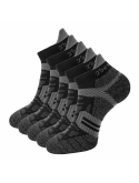 Pack of two pairs or five pairs of low-cut/ankle running socks featuring a padded footbed, arch compression support and ventilated mesh at the top of the foot for breathability.