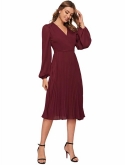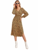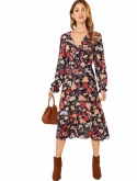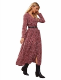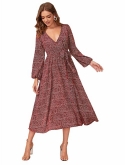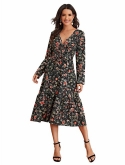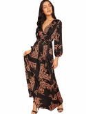 Feature: Cocktail Long Sleeve A Line Flowy Split V-Neck Floral Print Maxi