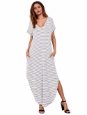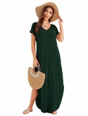 Loose Fit. V Neck,Short Sleeve,Side Split,Pockets