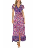 Features: This maxi features a wrap design, v-neckline,frill hemline and short butterfly sleeves with flower prints, you can not miss this!