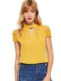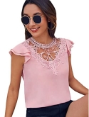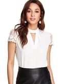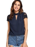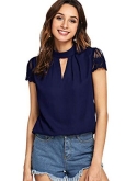 ROMWE Women's Elegant Lace Short Sleeve Sexy Keyhole Blouse Shirt