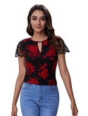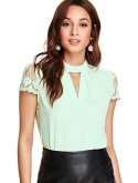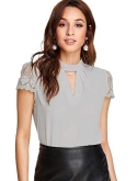 Women's Elegant Lace Short Sleeve Sexy Keyhole Blouse Shirt