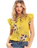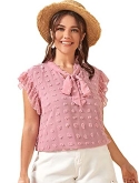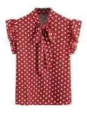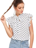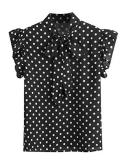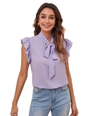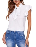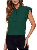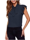Cap sleeve, short sleeve, ruffle sleeve, bow tie details, wear to work blouse for women