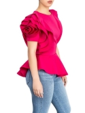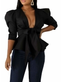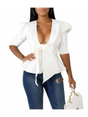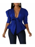 Round Neck Ruffle Short Sleeve Peplum Bodycon Blouse Shirts Tops