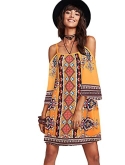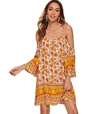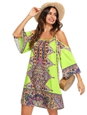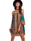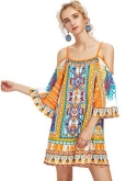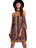 Feature: Cold Shoulder, Three Quarter Length Sleeve, Spaghetti Strap, Floral Print, Tunic, Boho, Short Dress