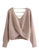 Casual V Neck Ribbed Twist Front Crop Top Sweater
