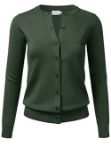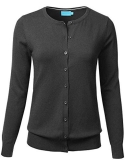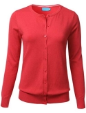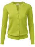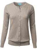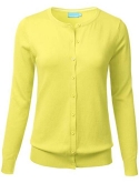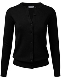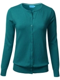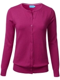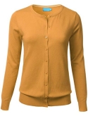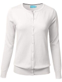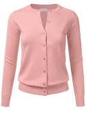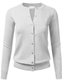 Gem Button Crew Neck Long Sleeve Soft Knit Cardigan Sweater / Features Gem button down collar, ribbed hem and sleeves