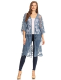 LOOSE FITTING KIMONO CARDIGAN. A sheer kimono style duster length cardigan with roomy half length sleeves. The open front can also be worn closed by adding favorite vintage inspired brooh (not included) to change up this verstaile piece. Long 40" length from shoulder to hem for an elegant flowy look.