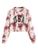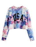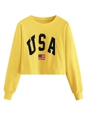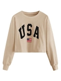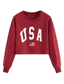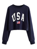 Material: Polyester USA letter printing, drop shoulder sweat shirt Comfy and Soft fabric, suitable for Spring and Autumn Machine wash / hand wash. Do not bleach Please refer to the Size Chart before ordering