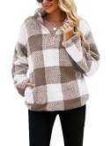 Style: This fleece pullover is featured with Pockets, Snap, Long Sleeves, Fuzzy, 1/4 Button Up and Patchwork elements, in a casual style