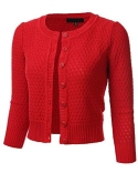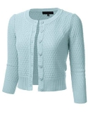Stretchy, Super Soft, Lightweight, Comfortable, and Smooth Texture / Features Unique Knit Pattern, 3/4 Sleeves, Ribbed Collar, Cuffs and Hem, Crew Neck Top, 7 or 8 Button Down Front, Comes in Both Regular and Plus Sizes.