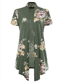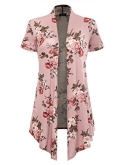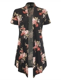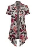 Machine Wash Floral Print & Solid Color A short sleeve cardigan features an open front and assymetrical hem Please refer to the size chart below the last product image / The colors may look different due to different monitor settings