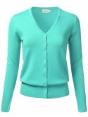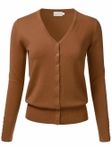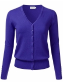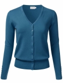 Soft Knit Button Down V-Neck Long Sleeve Cardigan With Buttons / Features button down collar, buttoned sleeve cuffs, ribbed hem and sleeves.