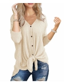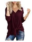 Features: Waffle knitted blouse with button down design,Sexy V Neck,Long sleeve/Sleeveless tunic tops, Curved hemline, Tie Front Hem design, Loose fit Bat Wing Plain Shirts