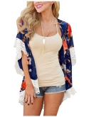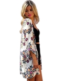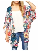 Fashion kimono style, flower print, bat sleeve, open placket, drop shoulder, relaxed fit, soft and lightweight material