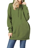 Mid-weight, soft and comfortable, stretchy fleece knit fabric, hits at thigh, 53% cotton, 45% polyester, 2% spandex; Hand or Machine wash cold, Low Iron if Necessary