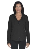 Attached hood with drawcord provides additional scalp and neck coverage; Split kangaroo pocket; Two-way Zipper