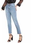 Features: Casual, Ripped, Skinny, Blue Jeans, Mid Waist, Long, Straight Leg, Semi-stretch fabric, Traditional Five-pocket, Front Zipper & Button Closure