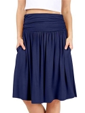 Get kicked-back comfort on off-duty days with this stretch pull-on skirt. This a line regular and plus size skirt is cut from a supersoft stretch jersey fabric with side pockets and a ruched gathered waistband that creates a flattering and smooth silhouette. The jersey fabric gives the waistband a wonderful stretch and freedom of movement.
